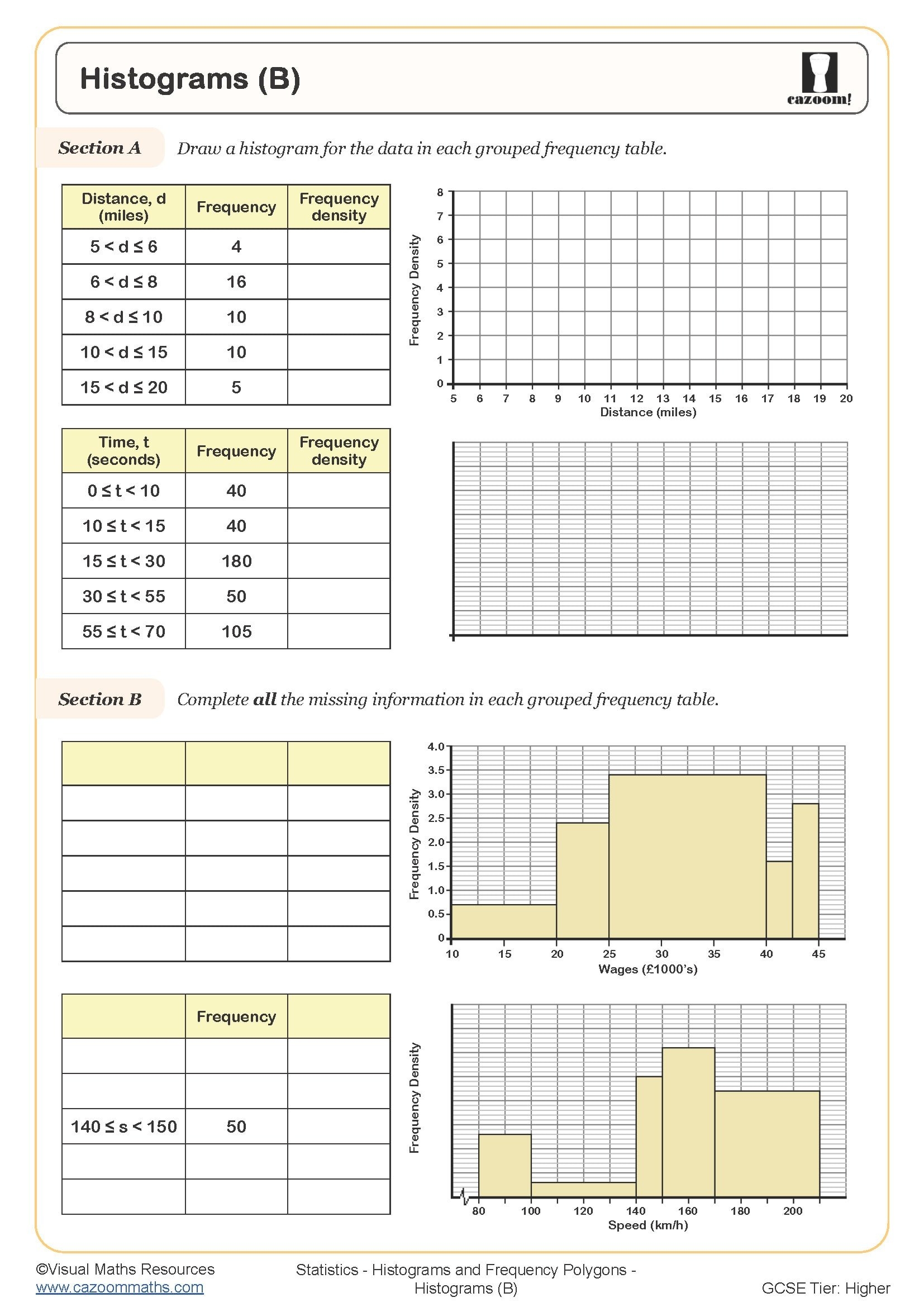 With these worksheets, you can improve your data analysis skills and become more comfortable working with histograms. They cover a variety of topics and difficulty levels, so you can find the perfect worksheet to suit your needs.