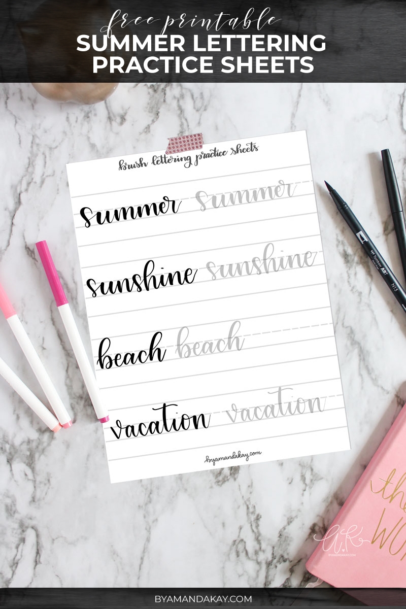 Free Printable Summer Brush Lettering Practice Sheets By Amanda Kay