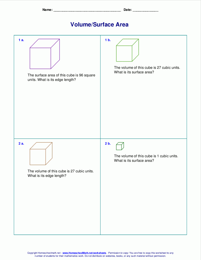Free Worksheets For The Volume And Surface Area Of Cubes