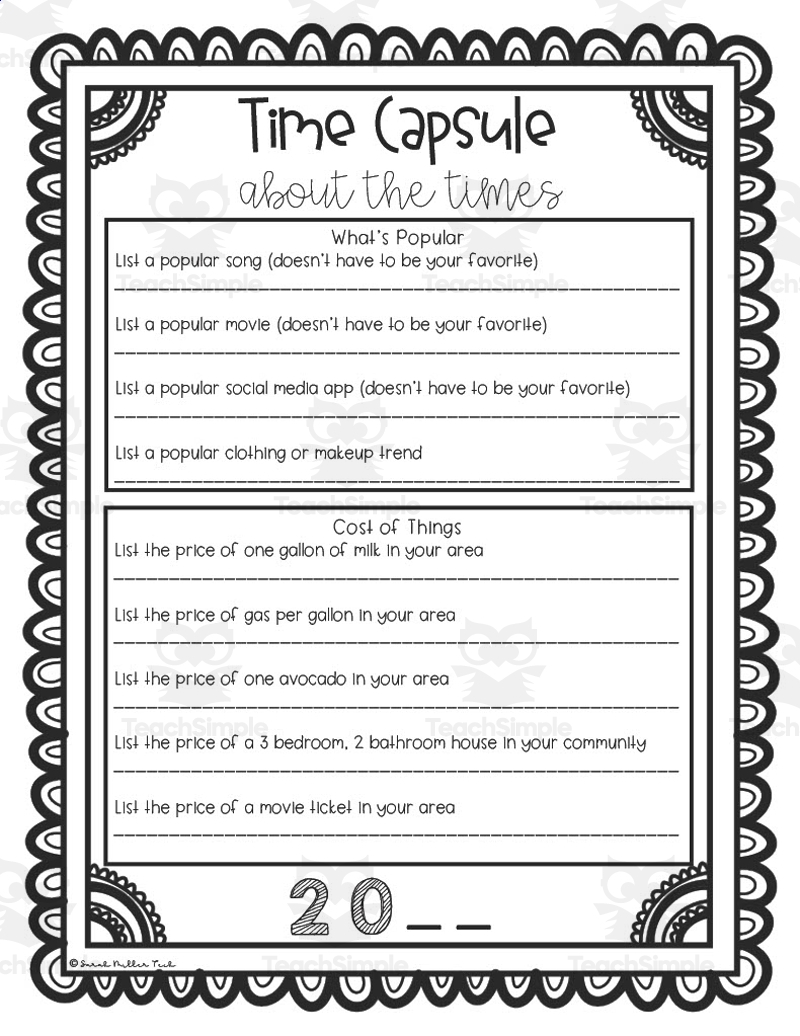 You can personalize the worksheets to suit your preferences and add your own unique touch. Once completed, you can seal them in a time capsule container and store them in a safe place. Then, when the time comes to open the capsule, you can revisit your memories and see how much has changed.