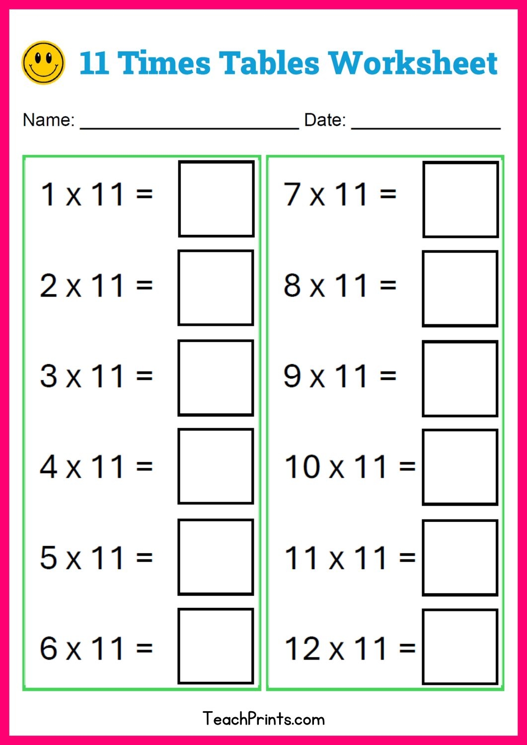 Free 11 Times Tables Worksheets 8 Versions Teach Prints