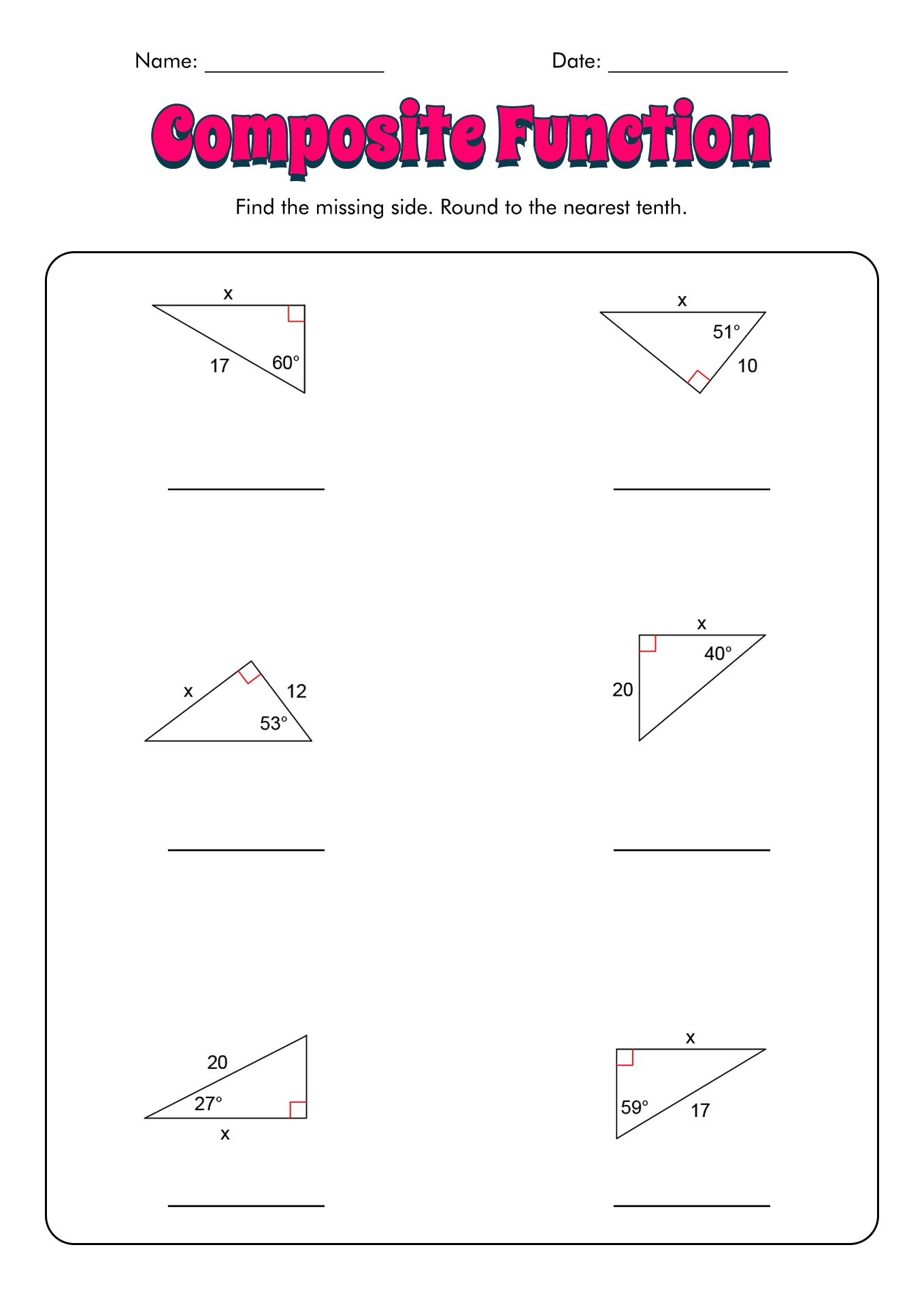 Trigonometry can be a challenging subject, but with the right resources and practice, you can conquer it. Our worksheets cover topics like sine, cosine, tangent, and more, making it easier for you to understand and apply trigonometric concepts.