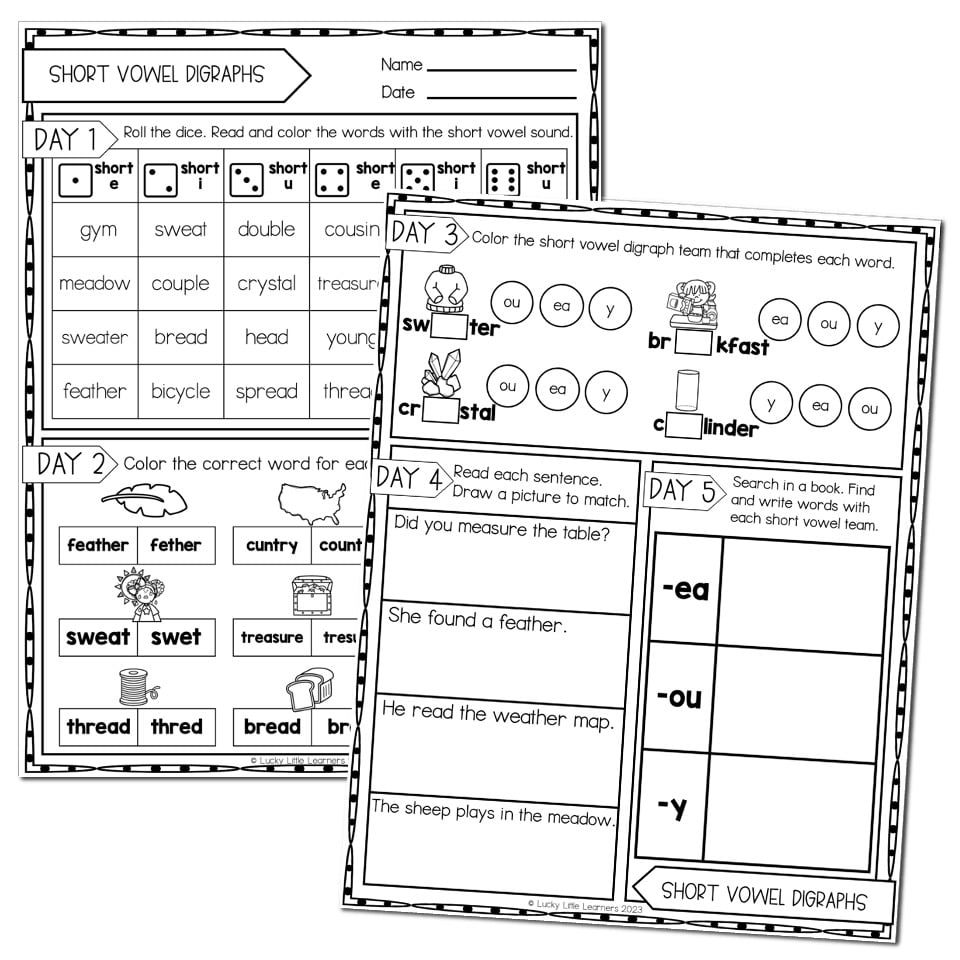 2nd Grade Phonics Worksheets Short Vowel Digraphs Lucky Little